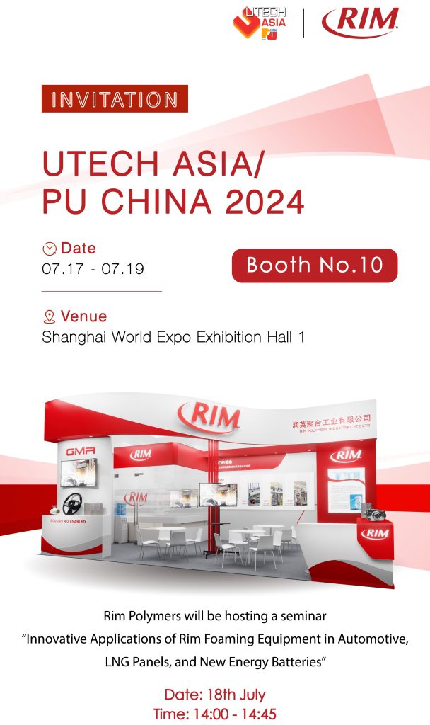 Estamos felizes em anunciar que a Rim Polymers Industries Pte Ltd participará da UTECH ASIA/PU CHINA 2024, que ocorrerá de 17 a 19 de julho no Shanghai World Expo Exhibition ...